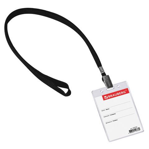 Бейдж вертикальный (90х60 мм) на черной ленте 45 см BRAUBERG