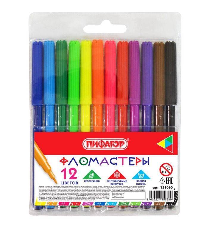 Фломастеры цветные ПИФАГОР 12 цветов (151090)