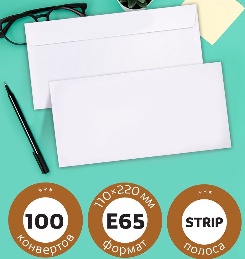 Конверты Е65 (110х220 мм) отрывная лента (100шт/упак)