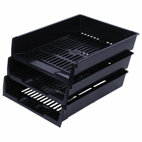 Лоток горизонтальный для бумаг комплект 3шт BRAUBERG (340х270х70мм) черный