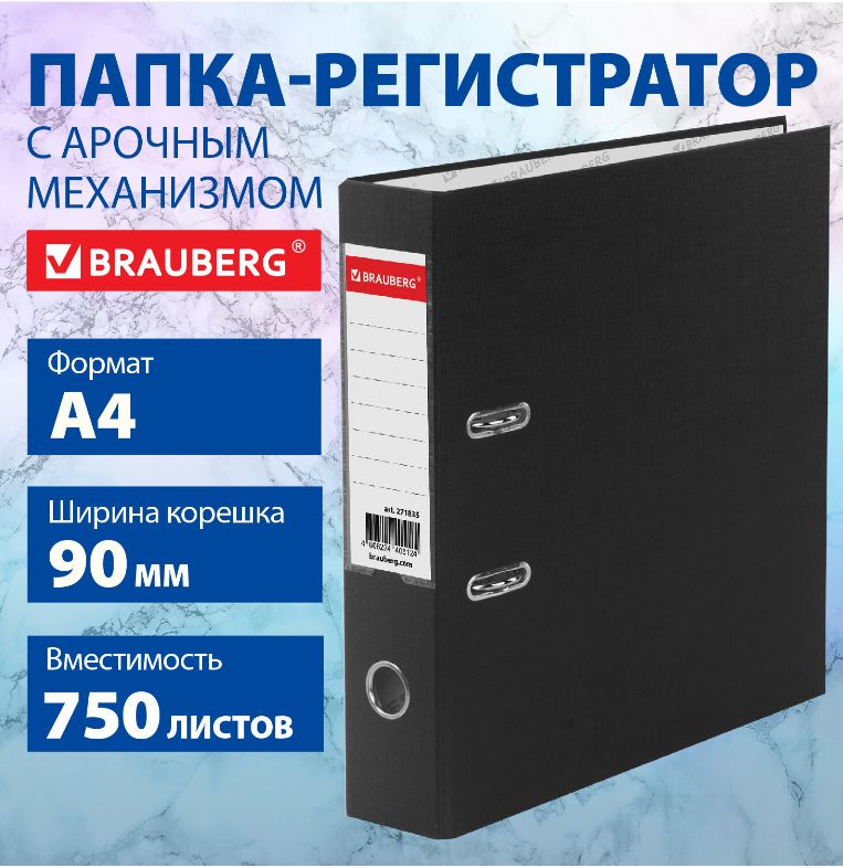 Папка-регистратор 90мм BRAUBERG черная (271835)