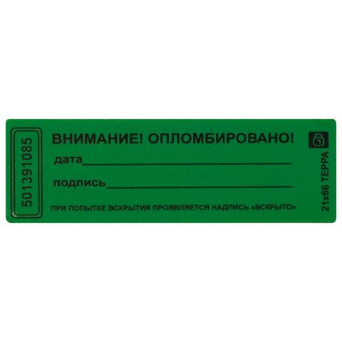 Пломбы самоклеящиеся номерные ТЕРРА КОМПЛЕКТ 1000 шт. (рулон)