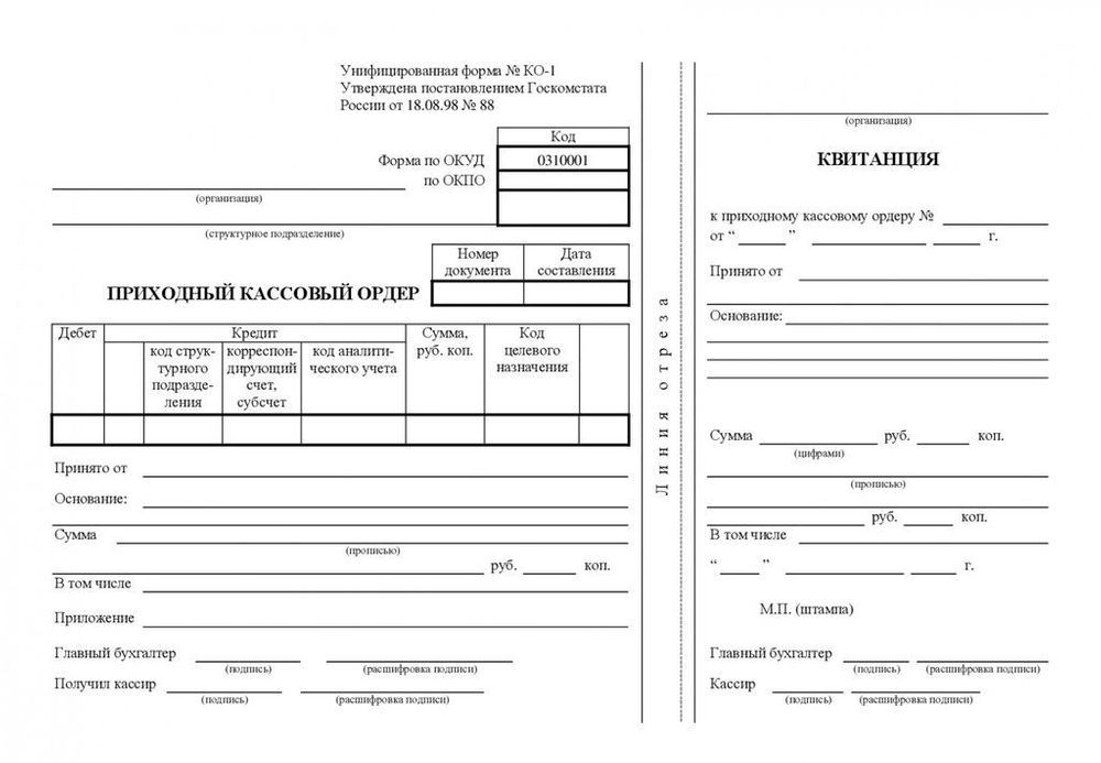 ПРИХОДНЫЙ КАССОВЫЙ ОРДЕР бланк 100л