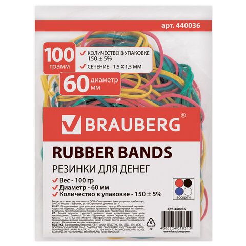 Резинки банковские универсальные d=60 мм,100 г BRAUBERG