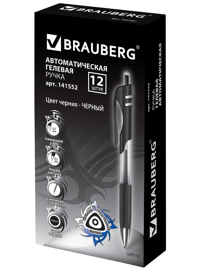 Ручка гелевая автоматическая с грипом BRAUBERG ЧЕРНАЯ (141552)