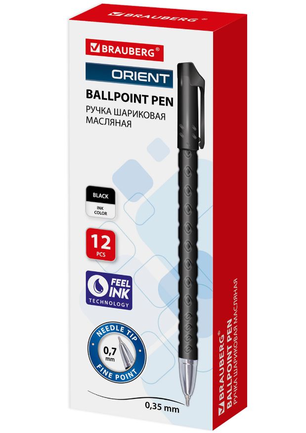 Ручка шариковая масляная BRAUBERG «Orient» Черная (12шт/упак)(143000)ПЗ