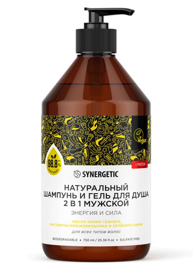Шампунь+гель для душа мужской 750мл SYNERGETIC (608279)
