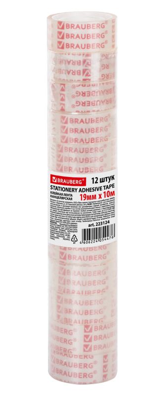 Скотч канцелярский19мм (10м) BRAUBERG комплект 12 шт прозрачные (223124)