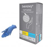 Перчатки нитриловые неопудренные 3,5г 200шт(100пар) голубые BENOVY (XS)